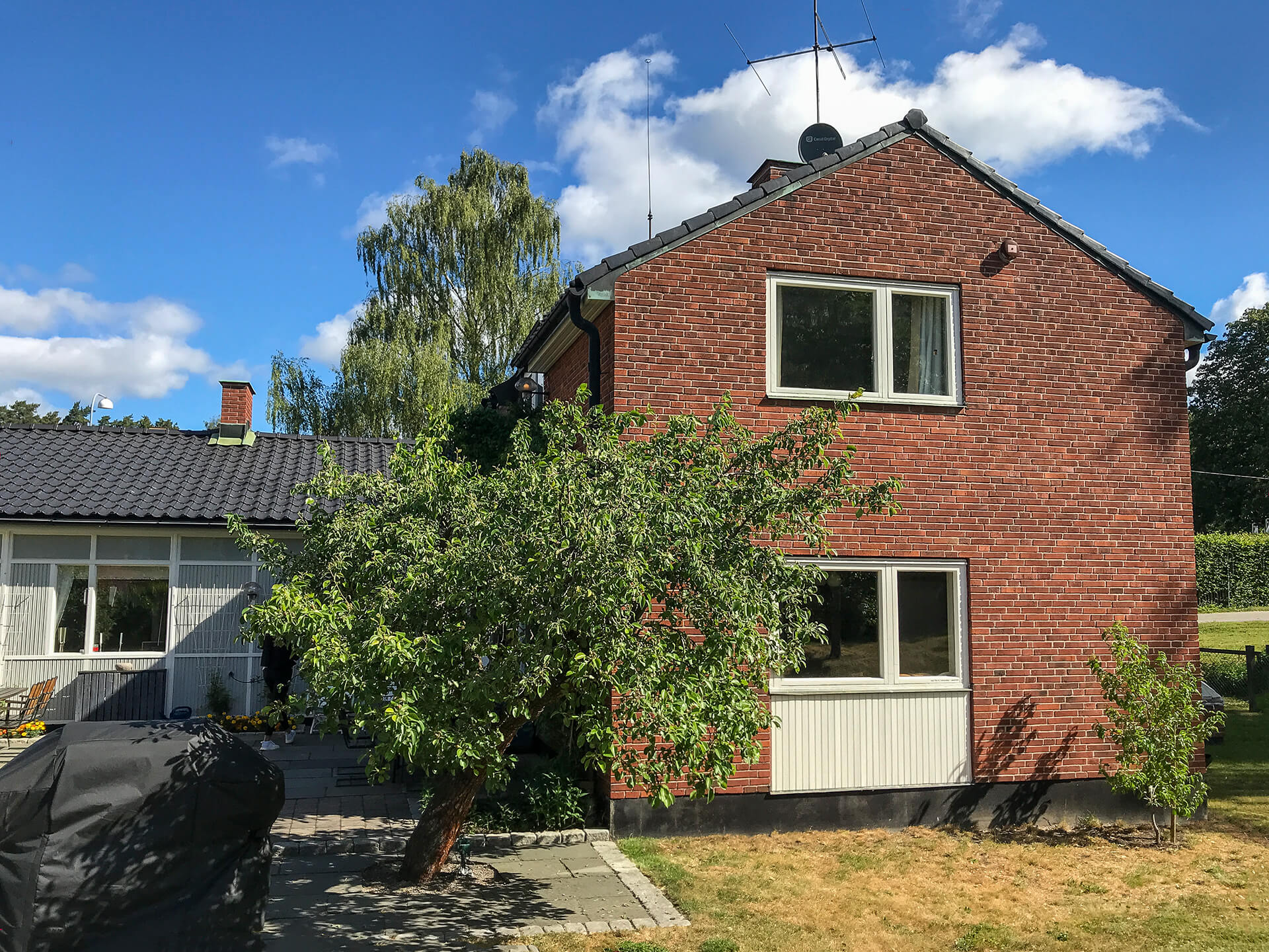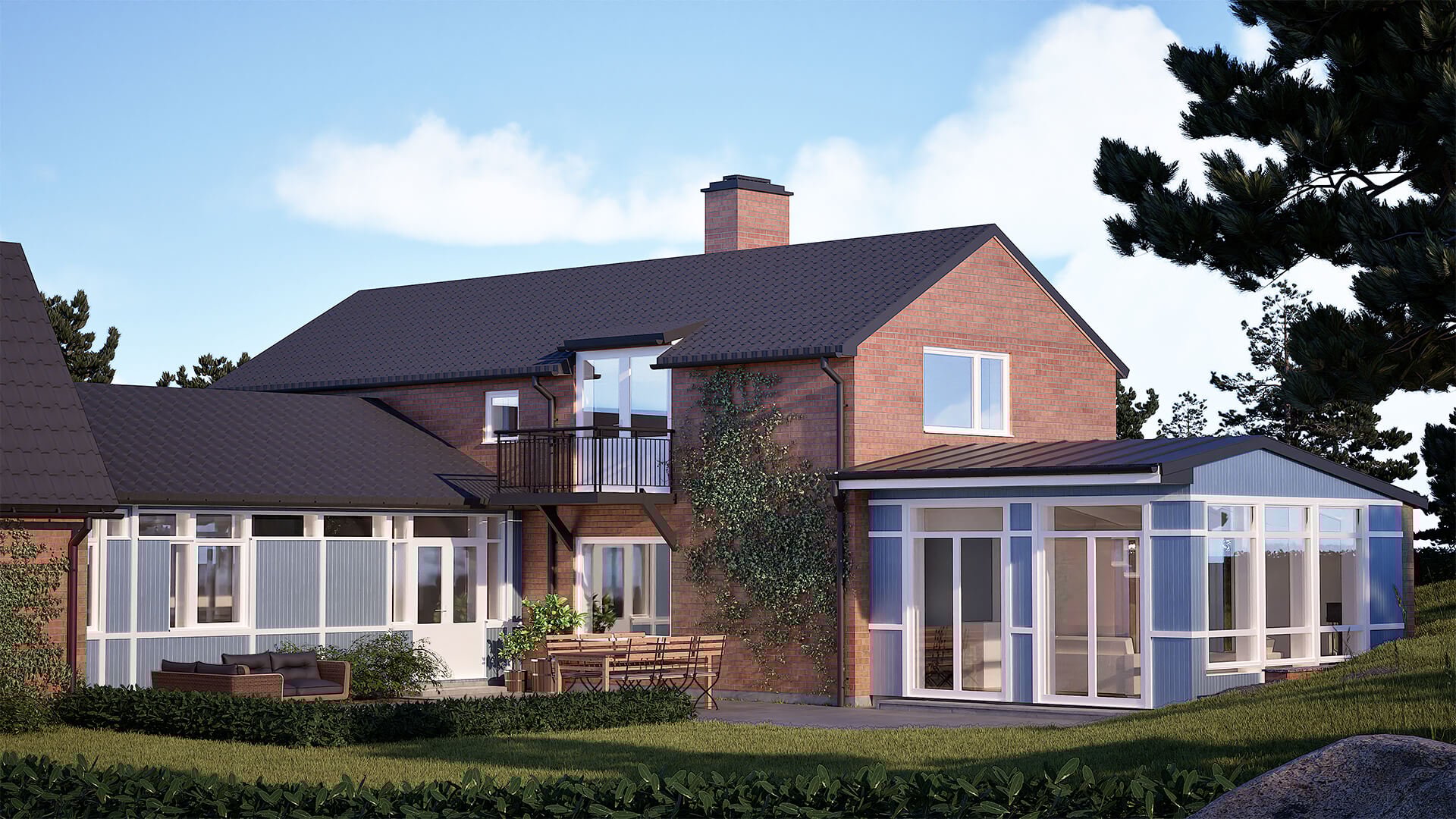 Kunden önskade en tillbyggnad som skulle ge bostaden ett större och mer öppet vardagsrum med direkt anslutning till ett ljust uterum.