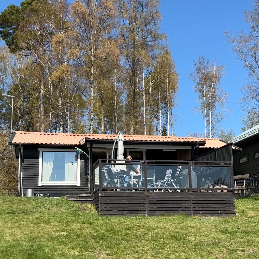 Fokuset var att bevara stugkänslan invändigt med naturnära träväggar och öppnare planlösning. De ville även modernisera uttrycket på fritidshuset. Resultatet blev ett laduhus i industristil med stående träpanel i svart kulör med svart bandtäckt plåt.