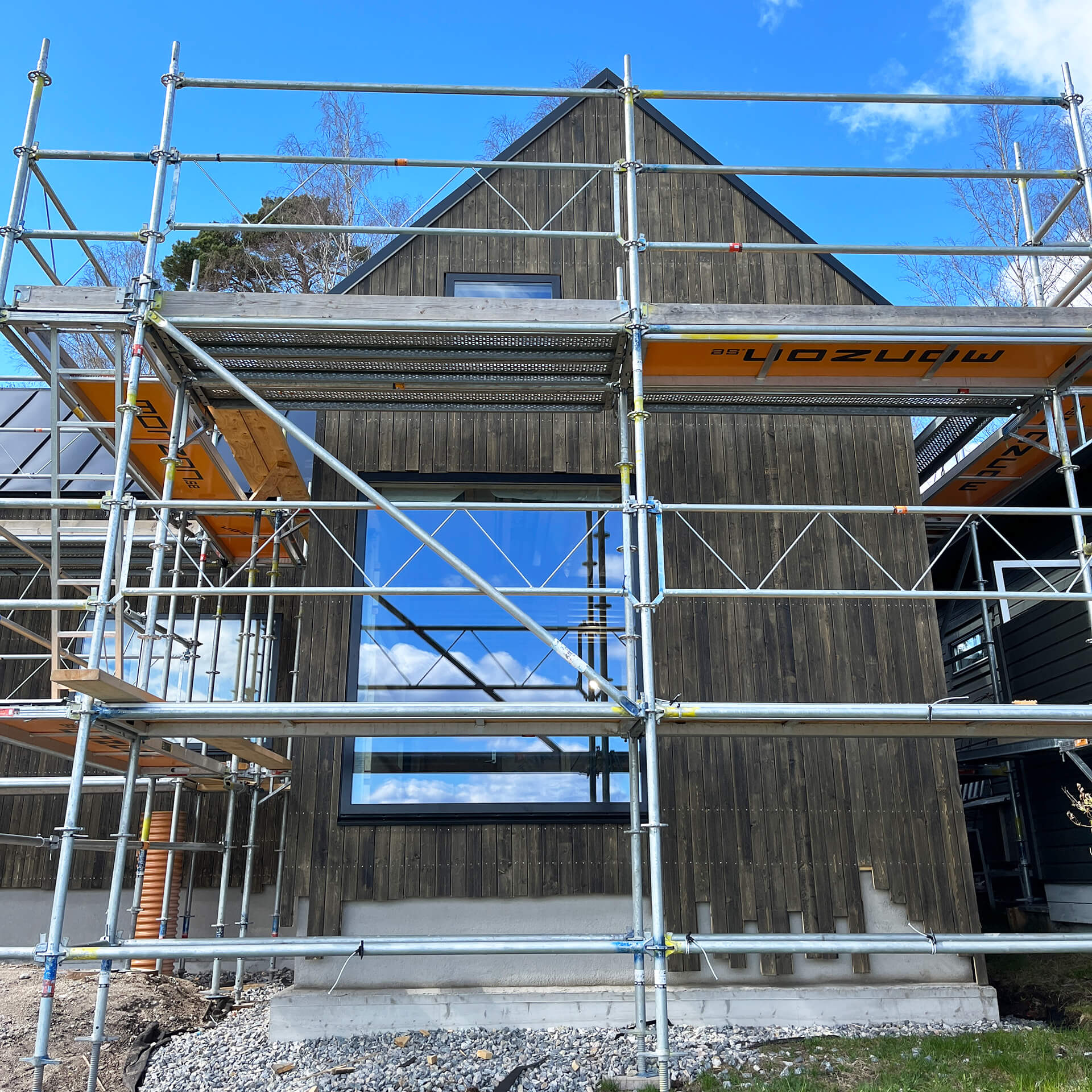 Svarta detaljer och stora fönster utan foder ut mot vattnet och den strandnära tomten. En stor önskan var en ny altan i två etage med plats för ute kök, jacuzzi och socialt umgänge..