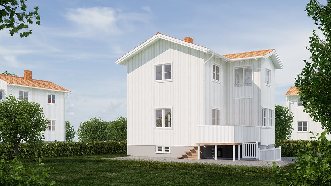 Båda förslagen landade i en tillbyggnation i tre plan med två tillkommande sovrum på övervåningen, där ett tidigare sovrum blev genomgångsrum och allrum. Samtliga sovrum hålls på den mer privata övervåningen. I den befintliga delen av entréplanen öppnades det upp en vägg mellan kök och vardagsrum. Detta medförde att ett nytt kök integrerades med tidigare vardagsrum som bytte skepnad till matplats, vilken framöver skulle inbjuda till härliga måltider och samtal, både med familjen och ge bra med platser när vänner är på besök.